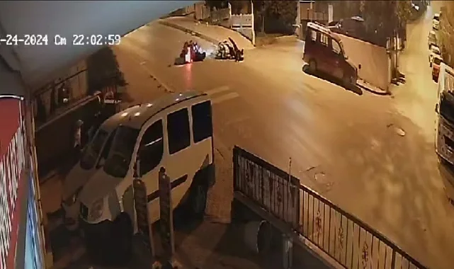 Kaza, çevredeki iş yerlerinin güvenlik kameraları kayıtlarına yansırken, görüntülerde iki motosikletin kafa kafaya çarpışma anı ve sonrasında motosikletlerde bulunan şahısların savrularak düşmeleri yer alıyor.