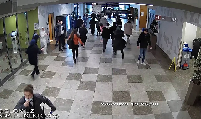 Maraş merkezli 6 Şubat depremlerinin yeni görüntüleri ortaya çıktı. Elazığ Fethi Sekin Şehir Hastanesinde kaydedilen görüntülerde her iki deprem anında da vatandaşların mahşeri kalabalıkta kaçışması ve tabelaların sarsıntı nedeni ile kopması görülüyor.
