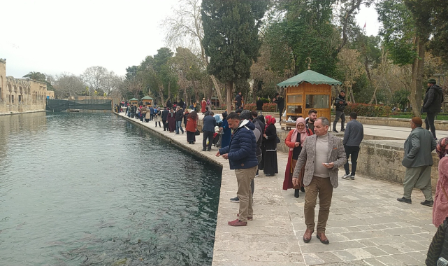 Şanlıurfa’da Berat Kandili nedeniyle Balıklıgöl yerleşkesini ziyaret eden vatandaşlar soğuk havaya aldırış etmedi.
