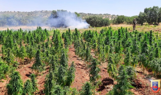 Diyarbakır’da yürütülen "Eren Abluka-28 Şehit Jandarma Uzman Çavuş Mehmet Arıyeşil" operasyonunda 3 milyon 57 bin kök Hint keneviri ve 153 kilo uyuşturucu ele geçirildi.