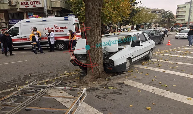 Şanlıurfa’nın Haliliye İlçesinde freni patlayan araç yol kenarında bulunan ağaca çarparak durdu.