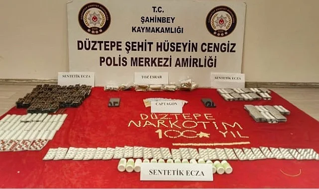 Gaziantep Emniyet Müdürlüğüne bağlı Şahinbey İlçe Emniyet Müdürlüğü ekipleri, bir iş yeri ve bir depoya operasyon gerçekleştirdi. Operasyon sırasında yapılan aramalarda 747,36 gram esrar ve 7 bin 692 adet uyuşturucu hap ele geçirildi. Operasyon sonucunda 2 şüpheli şahıs gözaltına alındı.