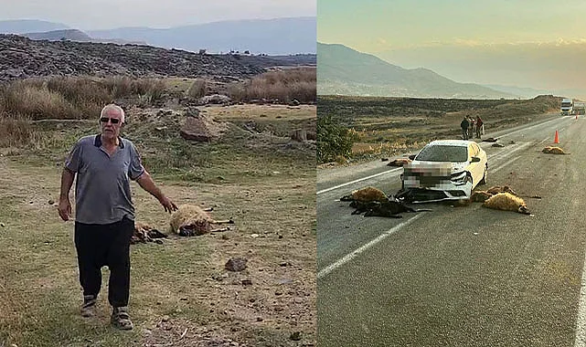 Küçükbaş hayvan sürüsünün arasında otomobil daldı: 17 hayvan telef oldu