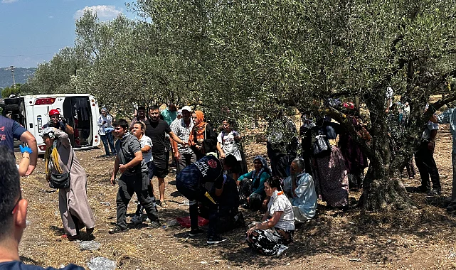 Manisa’nın Akhisar ilçesinde kamyonet ile otobüsün çarpışması sonucu meydana gelen kazada otobüs devrilirken 10 kişi de yaralandı.