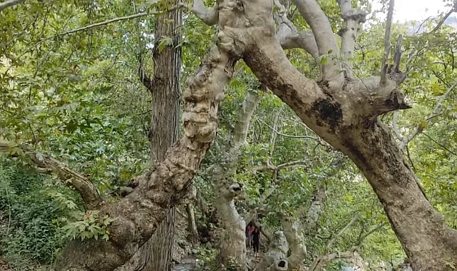 Mesafe tanımayan iki çınar ağacı tek gövde üzerinde birleşerek 50 metre yükseldi