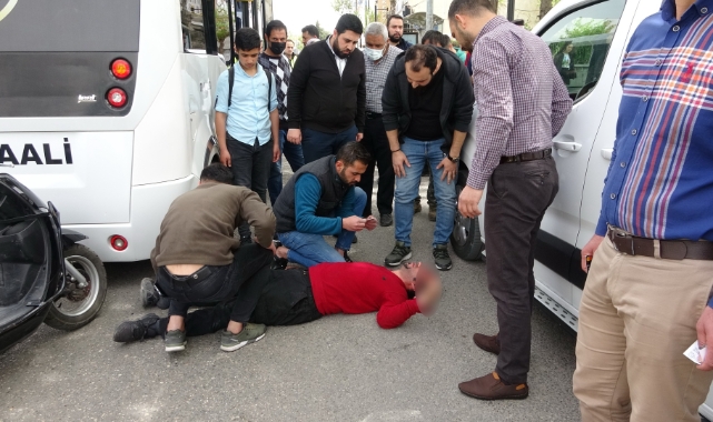 Minibüsün çarpması sonucu yaralanan ve şoka giren yaya, hastaneye gitmemek için herkese direndi.