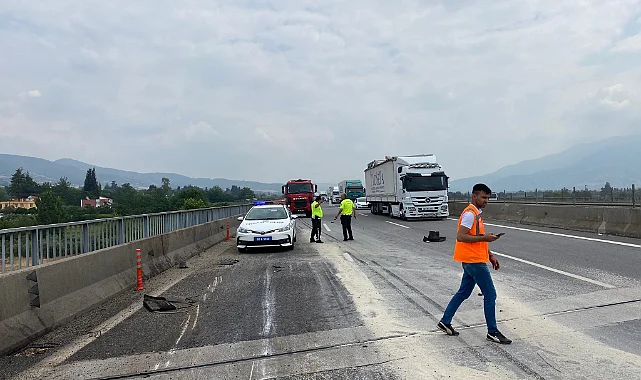 Kaza nedeniyle tırın dorsesindeki pirinçler yola savrulurken, TAG Otoyolu'nda 2 şerit trafiğe kapandı ve trafik akışı tek şeritten sağlandı.