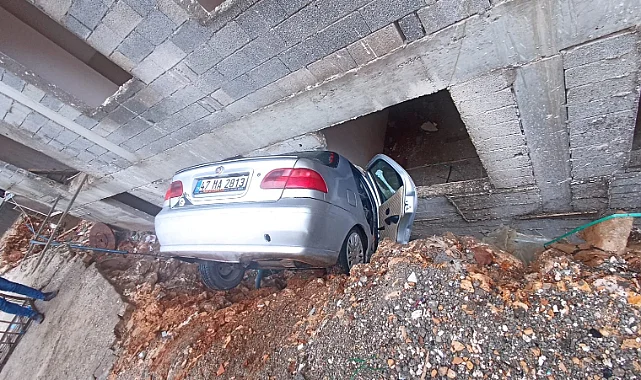 Mardin'in Artuklu ilçesinde sürücüsünün kontrolünü kaybettiği otomobil, inşaat halindeki binanın istinat duvarı arasındaki boşluğa düştü. Kazada otomobilde hasar oluştu.