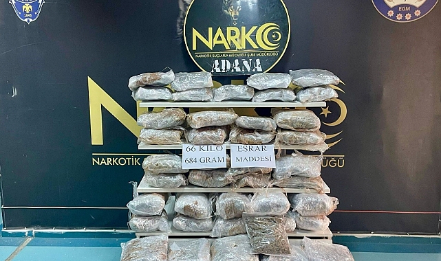 Bunun üzerine narkotik polisleri çuvalların içerisindeki samanları çıkarttığında paketler halinde saklanmış esrarları buldu. Toplamda 56 pakette 66 kilogram 684 gram esrar maddesi ele geçirildi.