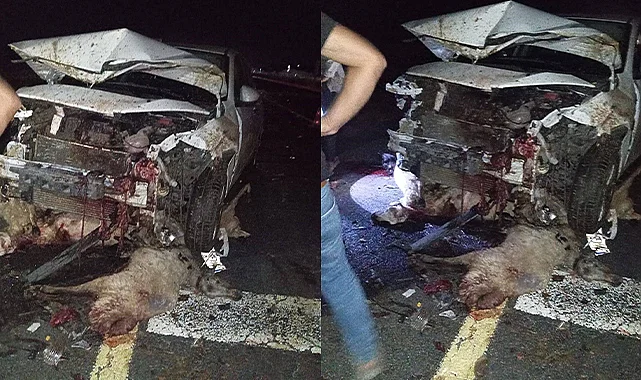 Olay, dün gece geç saatlerde Siverek-Diyarbakır karayolu 20’nci kilometresinde meydana geldi. Alınan bilgilere göre, gece geç saatlerde sürücüsü ismi öğrenilemeyen araç, gece karanlığında yolun karşı tarafında geçmeye çalışan koyun sürüsünü fark etmeyerek sürünün içine daldı.